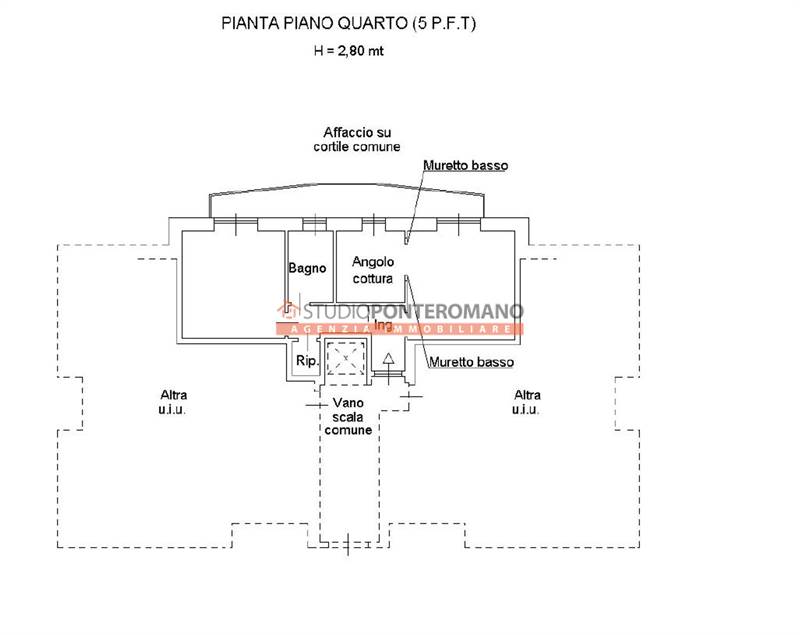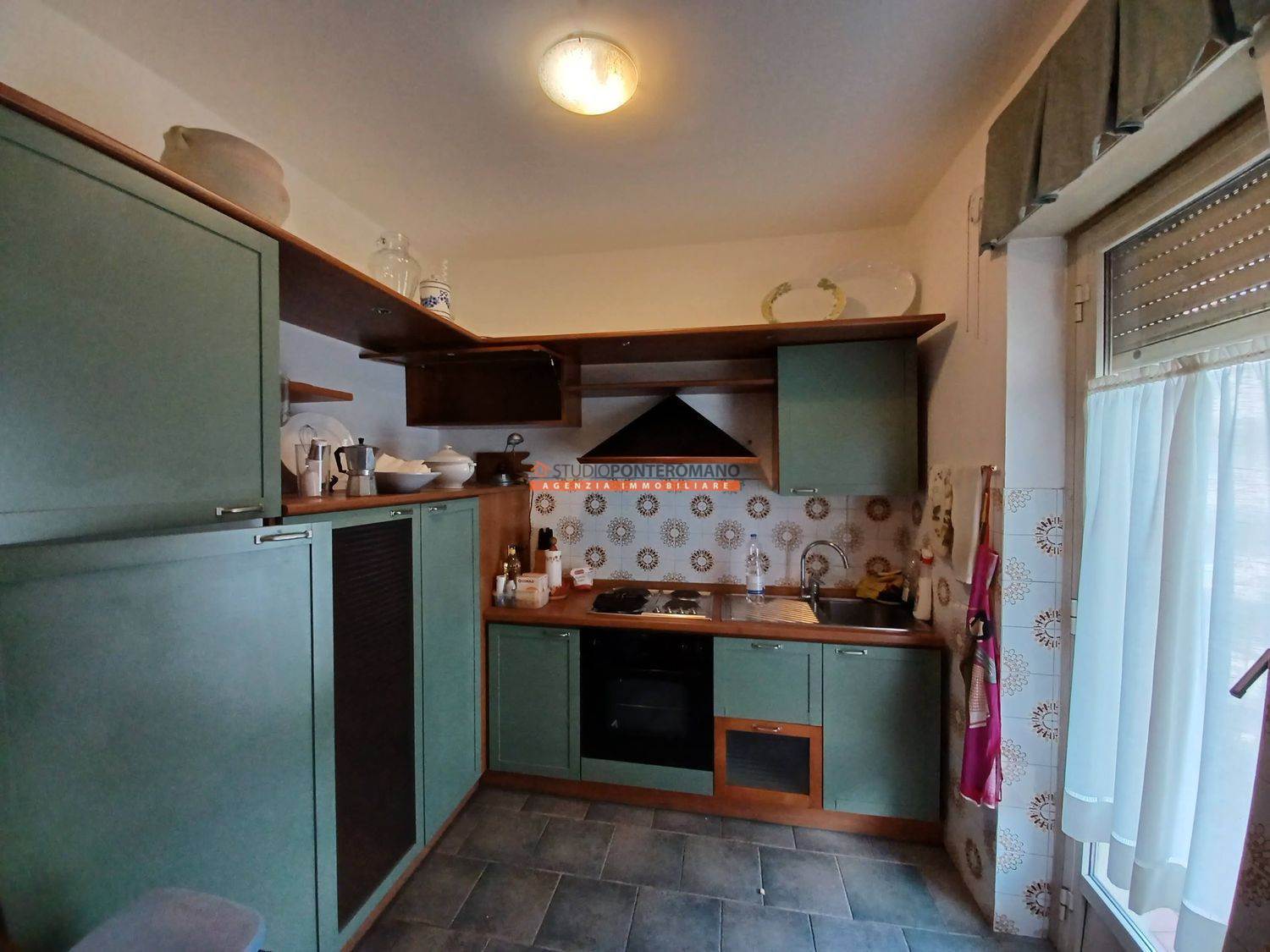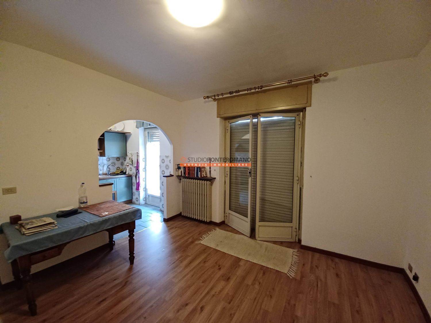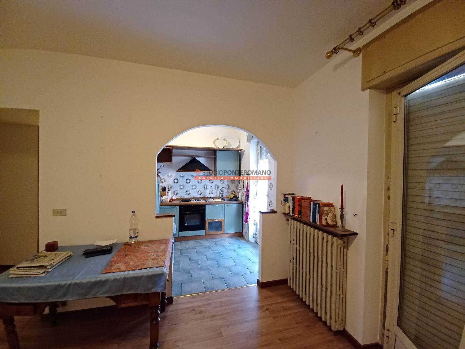 On the fourth floor of a building that has recently undergone thermal insulation work, apartment comprising entrance hall, living room, kitchen, bedroom, hallway, closet, bathroom and balcony. With garage, cellar and communal green area.
