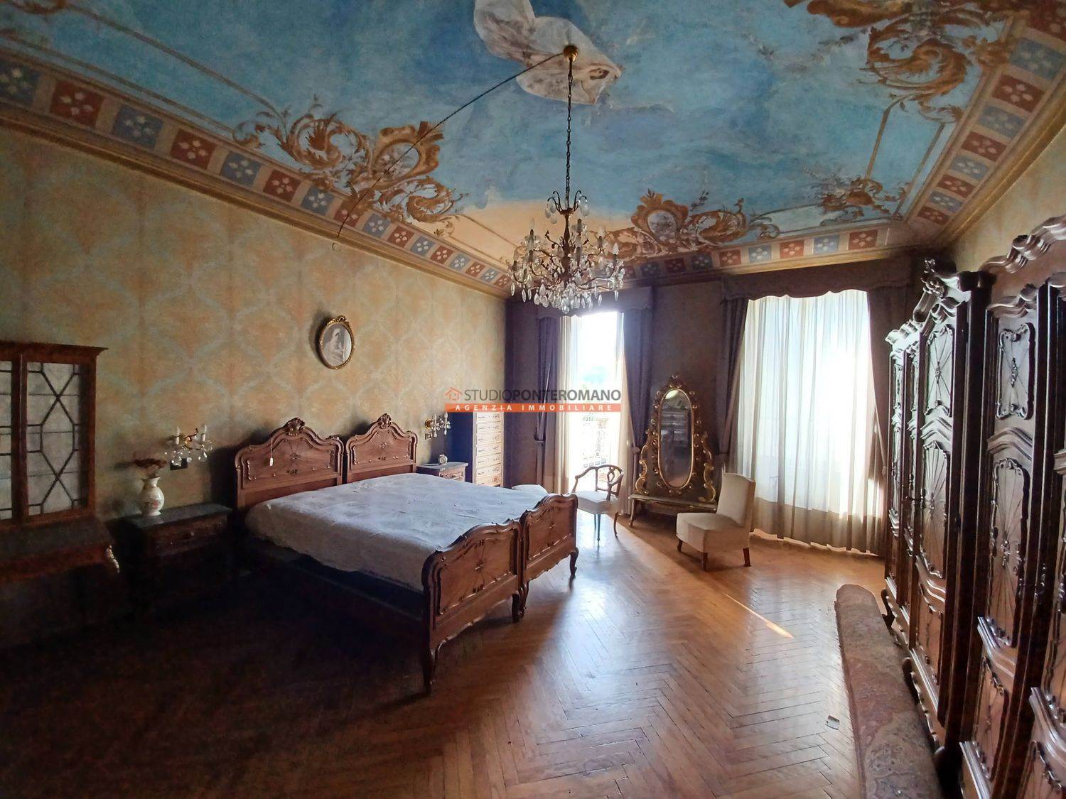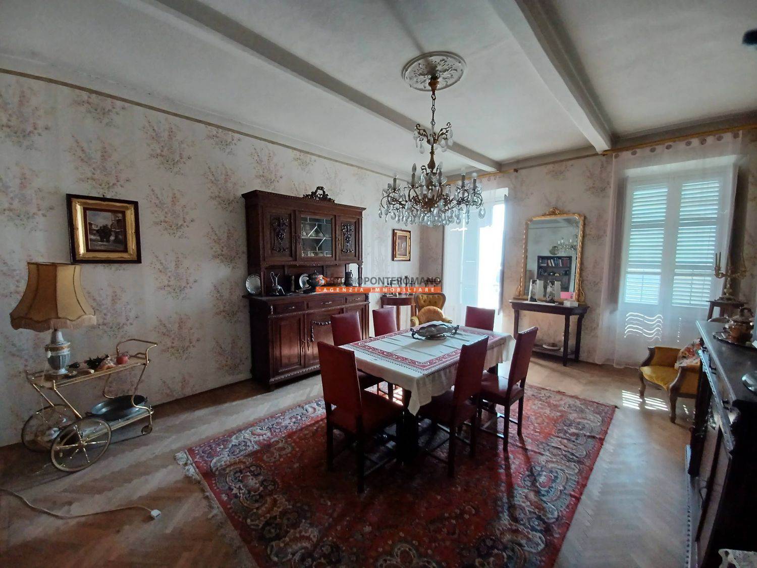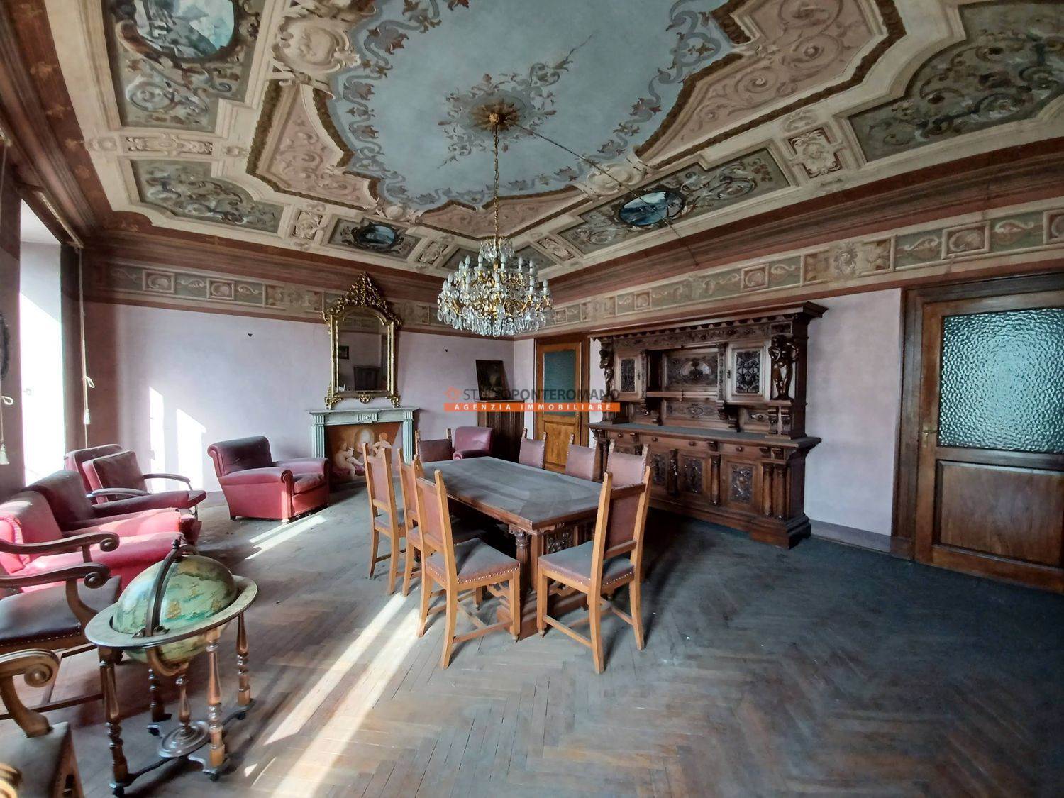 In a period house, built in 1861, a portion comprising two floors, consisting of entrance hall, kitchen, living room, lounge, 3 bedrooms, kitchen and bathroom on the ground floor; kitchen, living room, 3 bedrooms, bathroom, balcony and large terrace on the first floor. With 2 cellars in the basement, large garage and garden with driveway on the ground floor.