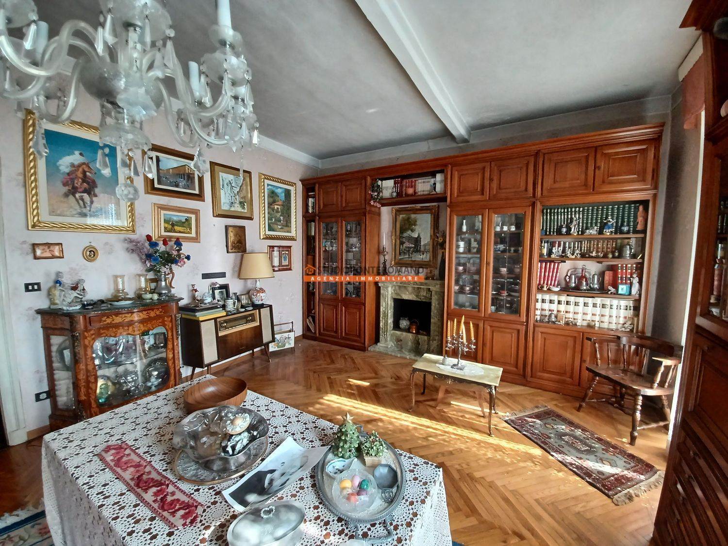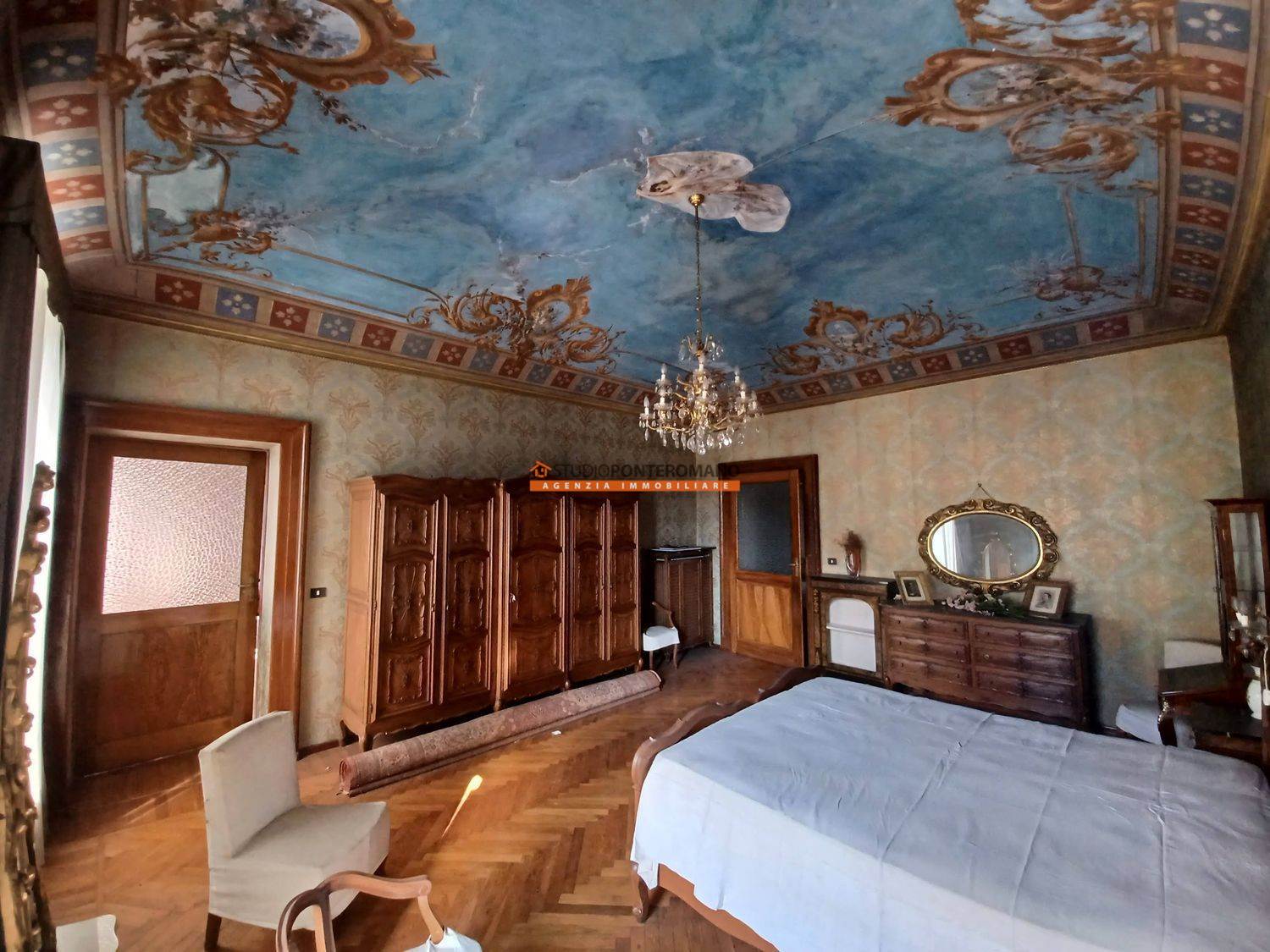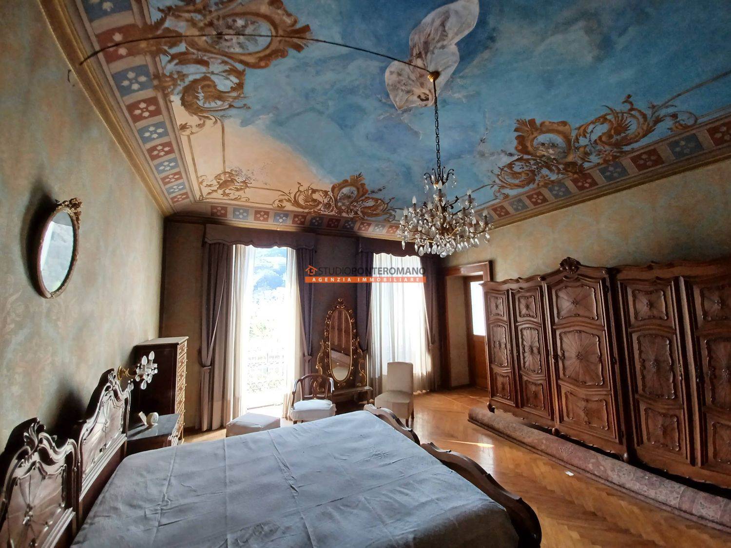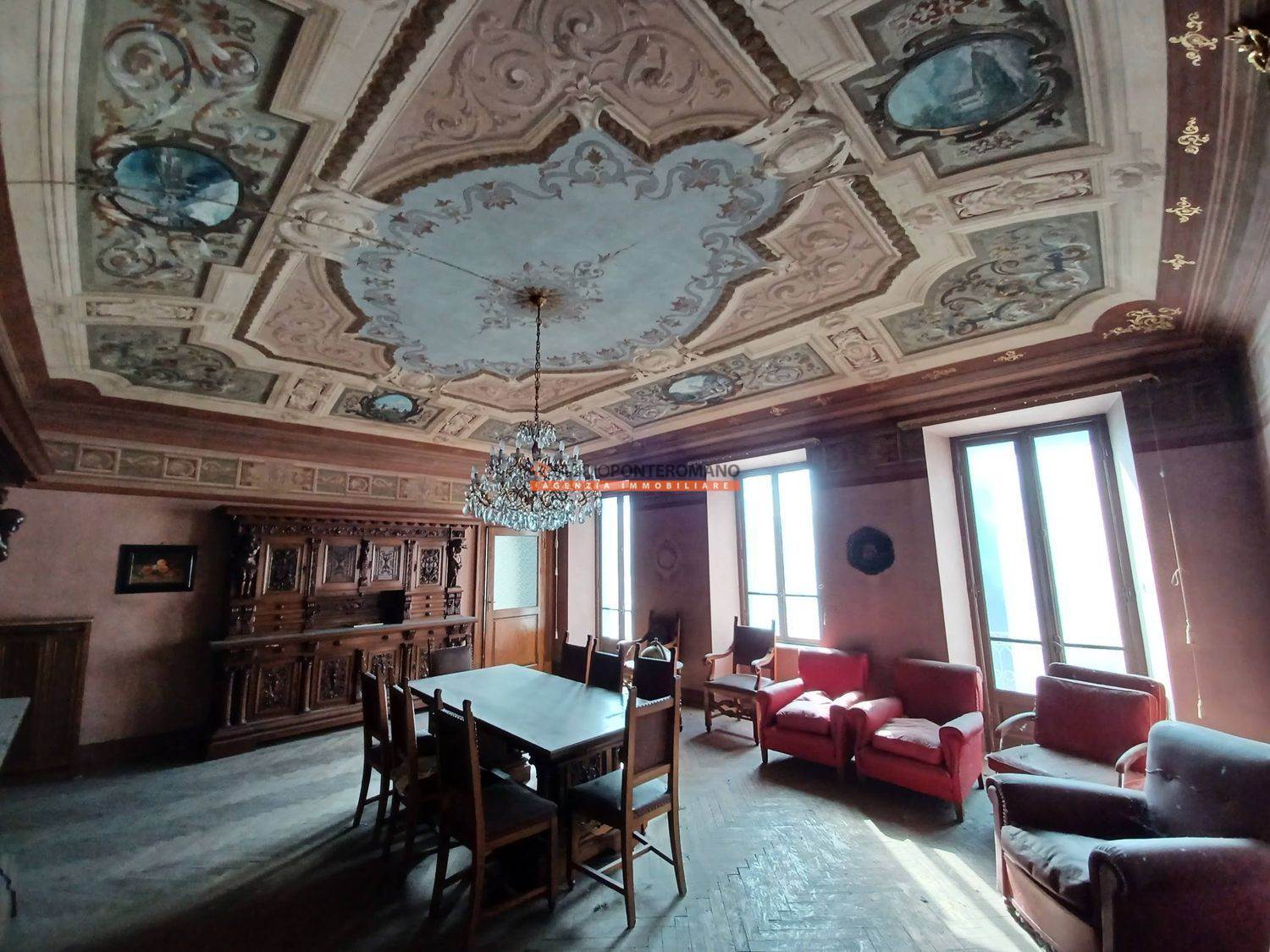 In a period house, built in 1861, a portion comprising two floors, consisting of entrance hall, kitchen, living room, lounge, 3 bedrooms, kitchen and bathroom on the ground floor; kitchen, living room, 3 bedrooms, bathroom, balcony and large terrace on the first floor. With 2 cellars in the basement, large garage and garden with driveway on the ground floor.