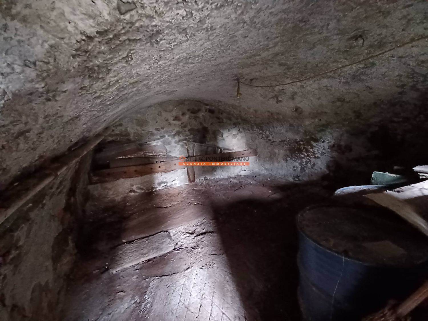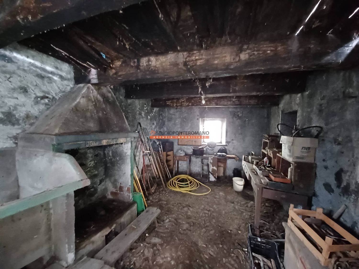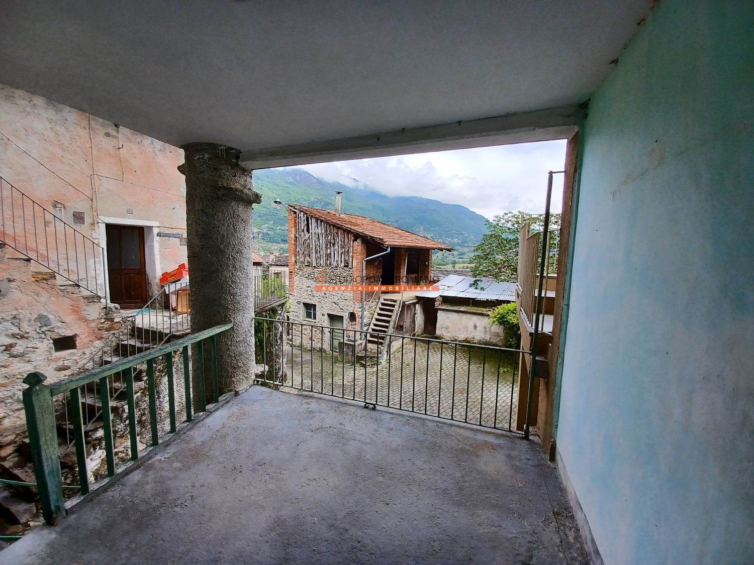 Dans une zone vallonnée, maison mitoyenne à rénover avec 2 pièces et salle de bain extérieure au premier étage; 2 pièces au deuxième étage; grenier, cave et remise dans la cour. Avec grand jardin privé panoramique. Sont inclus trois grands locaux, w. c. et terrasse dans un bâtiment adjacent.