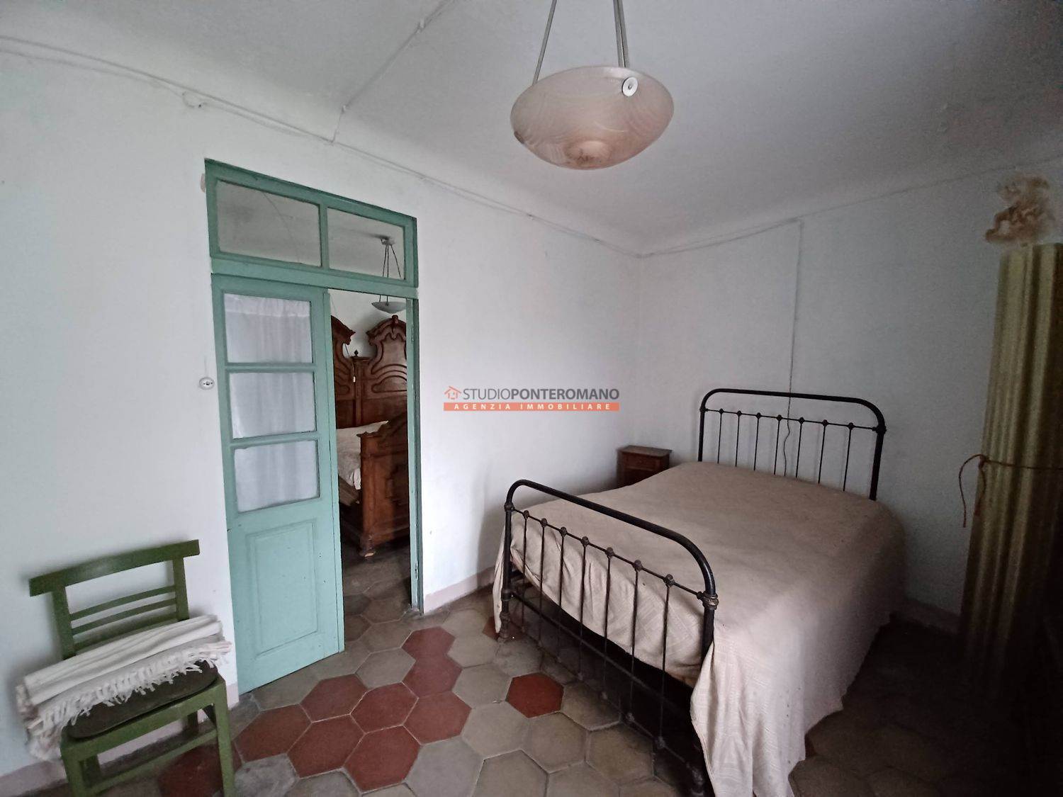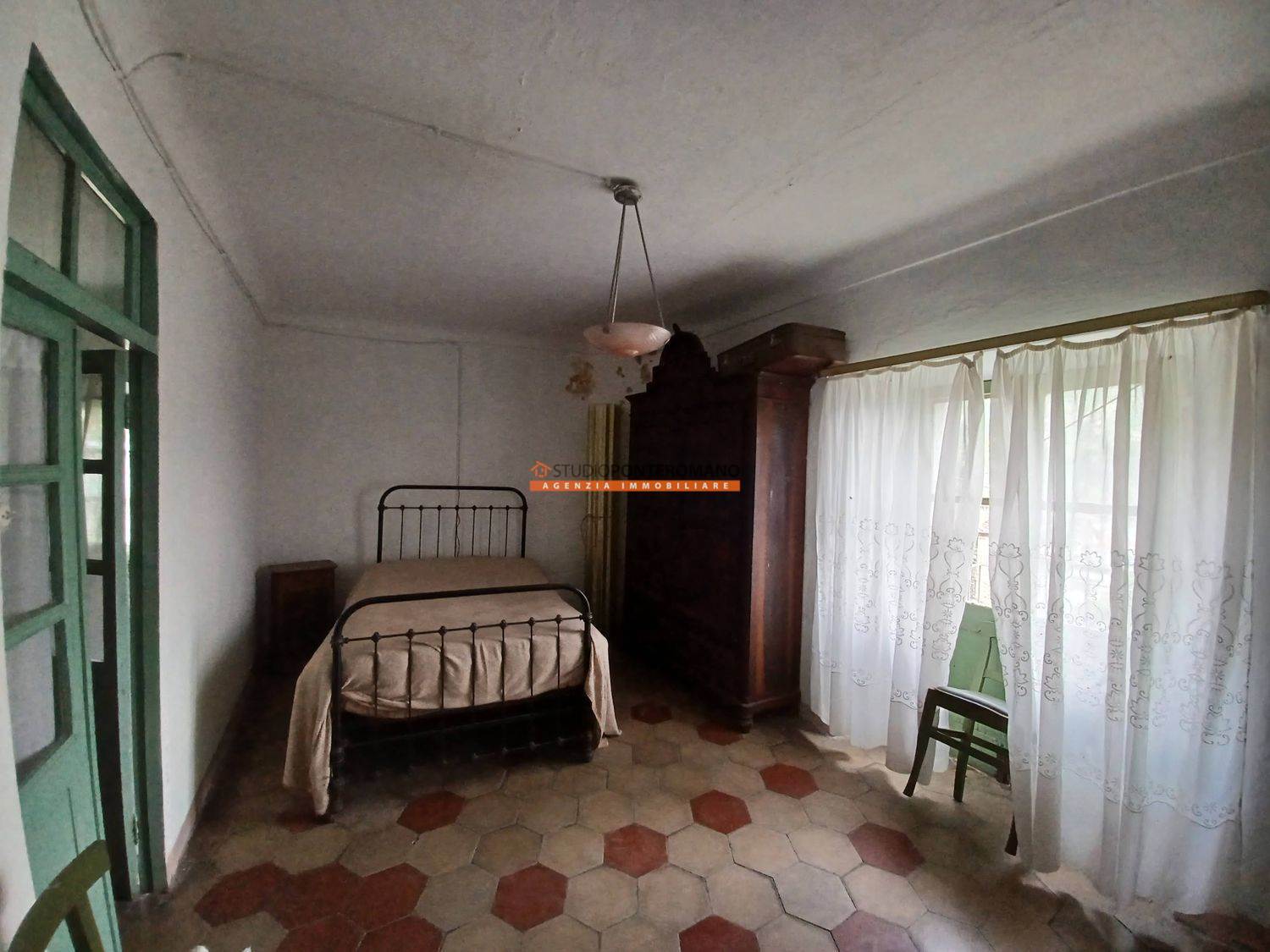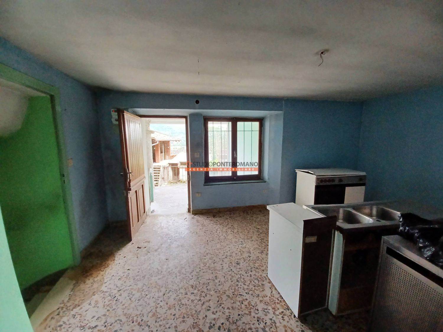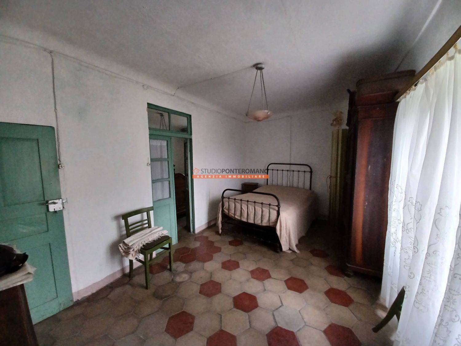 Dans une zone vallonnée, maison mitoyenne à rénover avec 2 pièces et salle de bain extérieure au premier étage; 2 pièces au deuxième étage; grenier, cave et remise dans la cour. Avec grand jardin privé panoramique. Sont inclus trois grands locaux, w. c. et terrasse dans un bâtiment adjacent.