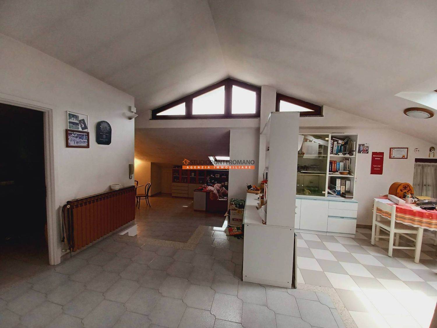 Dans un quartier résidentiel, villa individuelle incluse dans environ 2200 m² d'espace extérieur avec verger et entièrement clôturée, composée d'une habitation au rez-de-chaussée comprenant entrée, séjour, salle à manger, bureau, cuisine habitable, 3 chambres, deux salles de bains, dégagement, débarras et porche; au sous-sol, taverne, 2 caves, buanderie, couloir et garage triple; grenier au premier étage. Le terrain environnant, avec capacité de construction, est utile pour un agrandissement de la villa d'environ 150 m² et dispose d'un système d'irrigation automatique.
