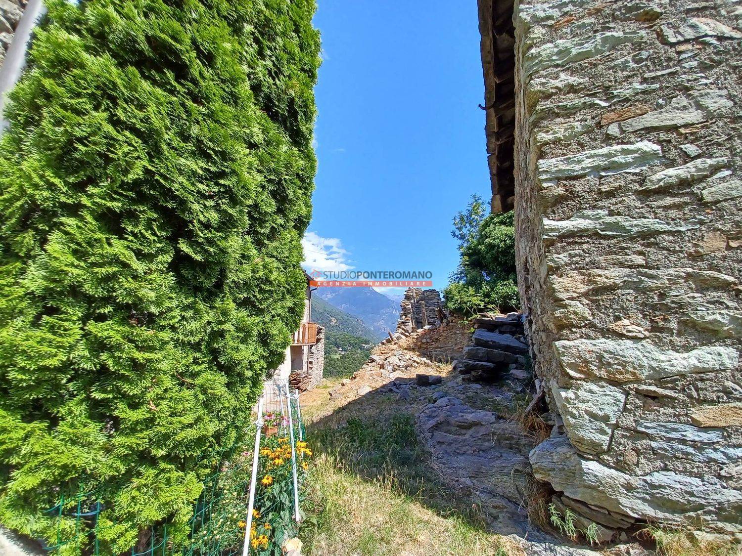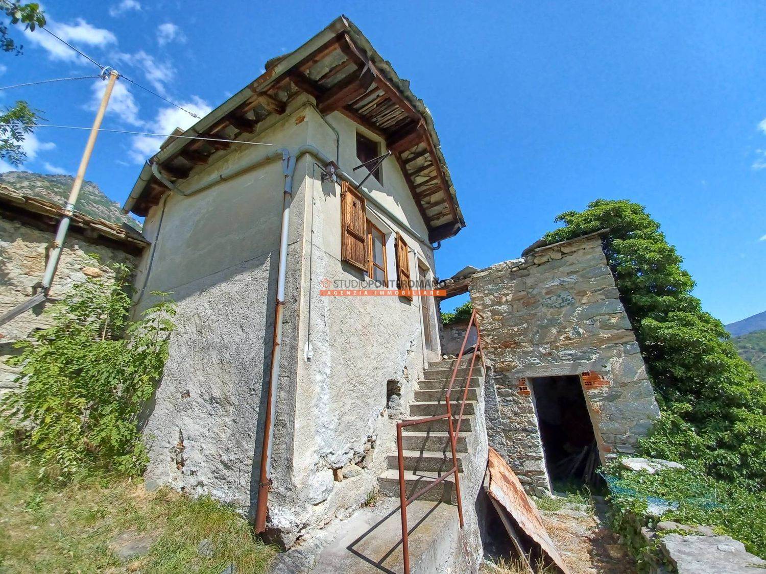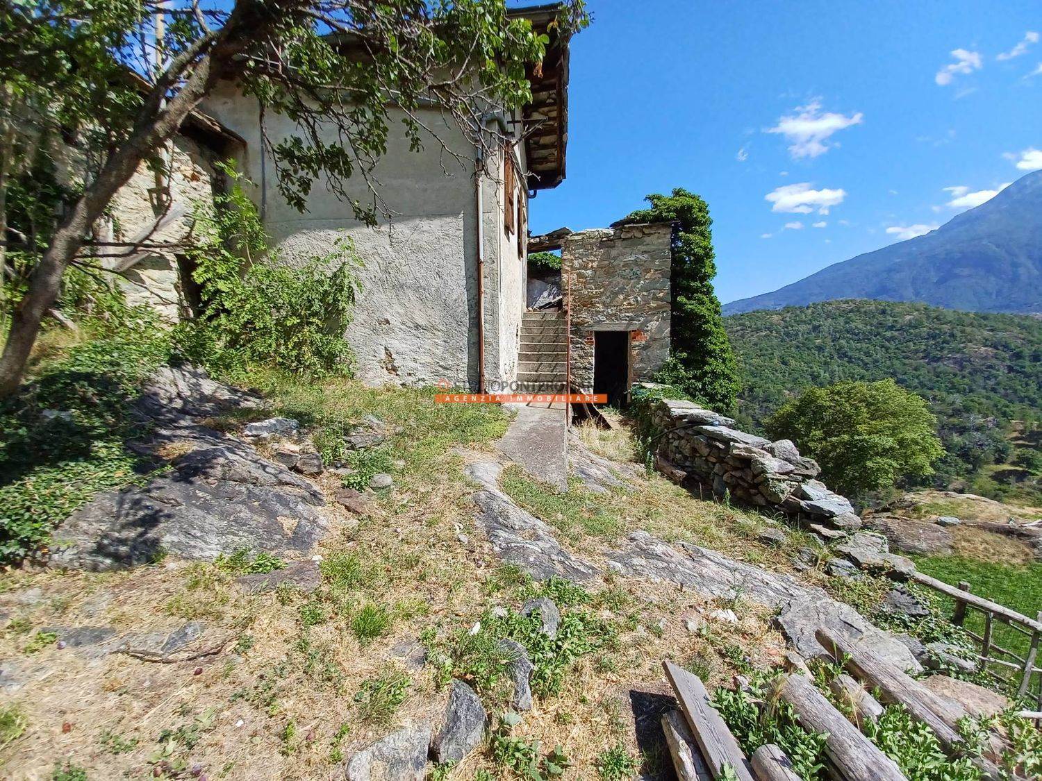 À Località Albard di Bard, petite maison jumelée à rénover comprenant une étable au rez-de-chaussée, une chambre au premier étage et des combles, ainsi qu'une cour privée. Située à la fin du hameau, dans une position ensoleillée et parfaitement exposée.