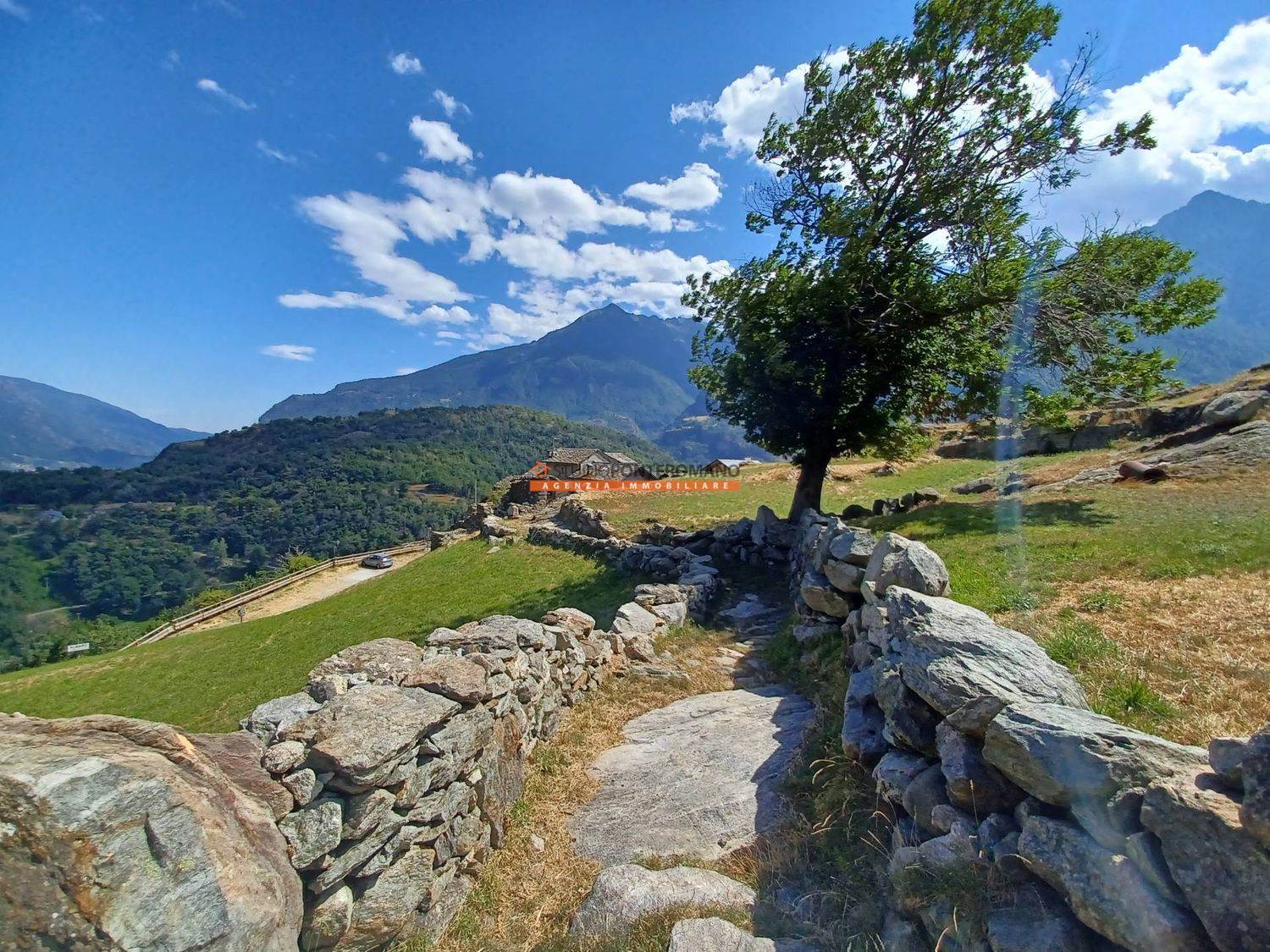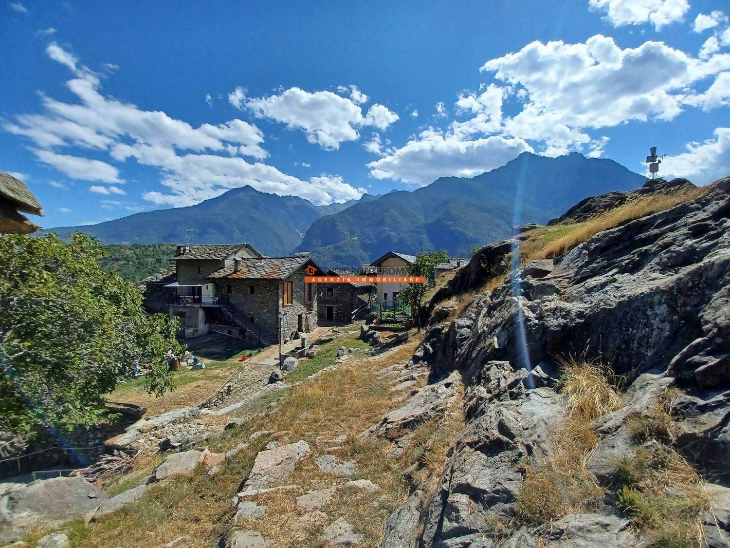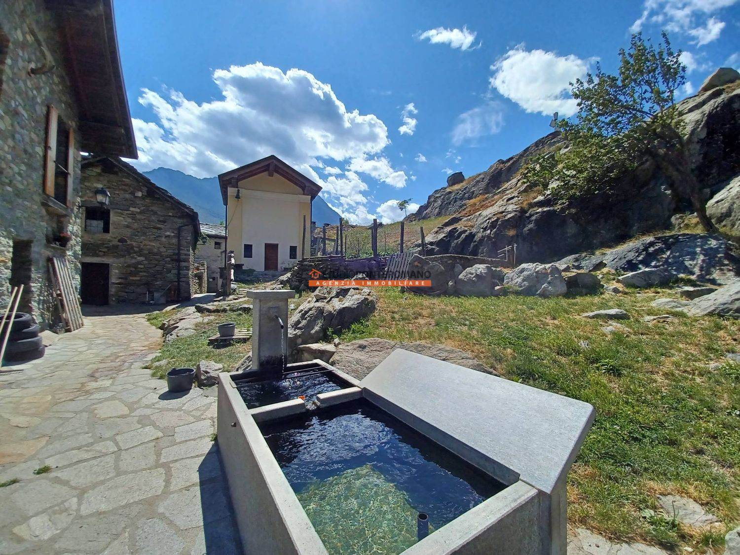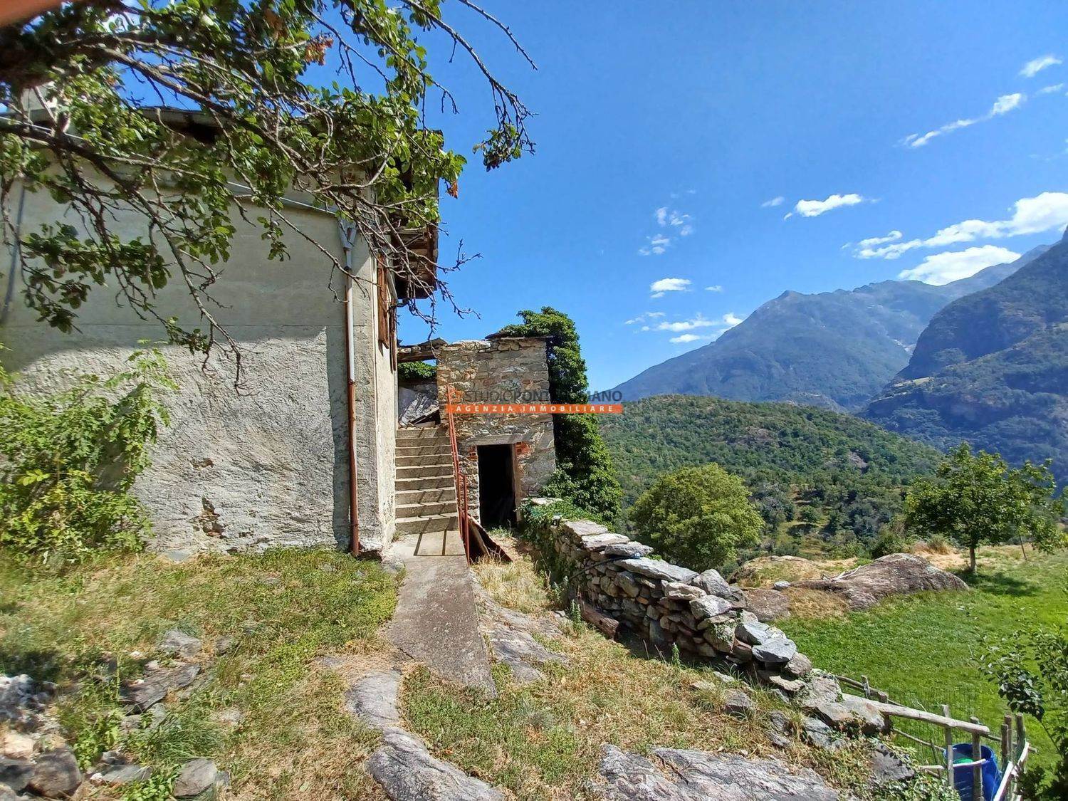 À Località Albard di Bard, petite maison jumelée à rénover comprenant une étable au rez-de-chaussée, une chambre au premier étage et des combles, ainsi qu'une cour privée. Située à la fin du hameau, dans une position ensoleillée et parfaitement exposée.
