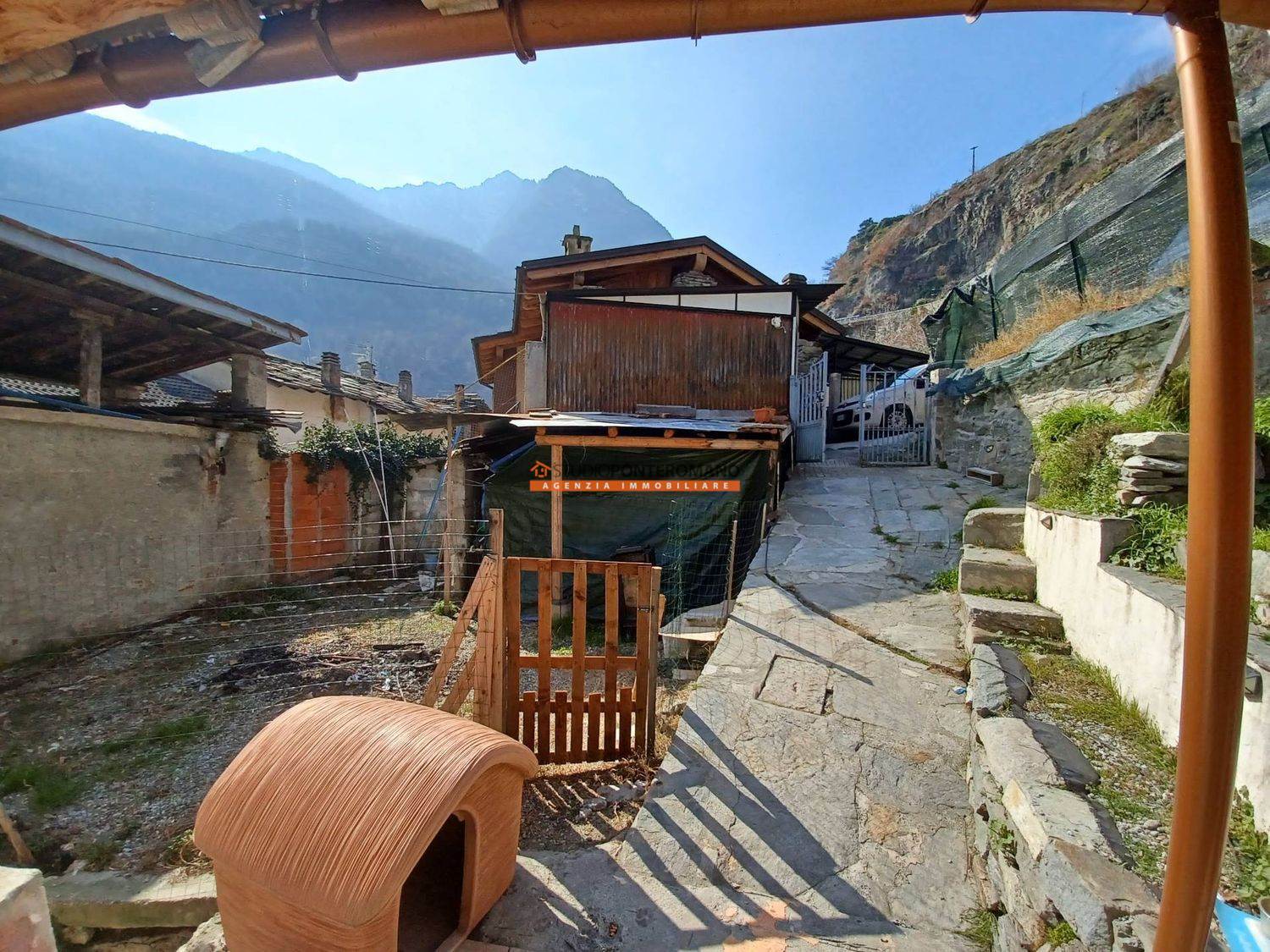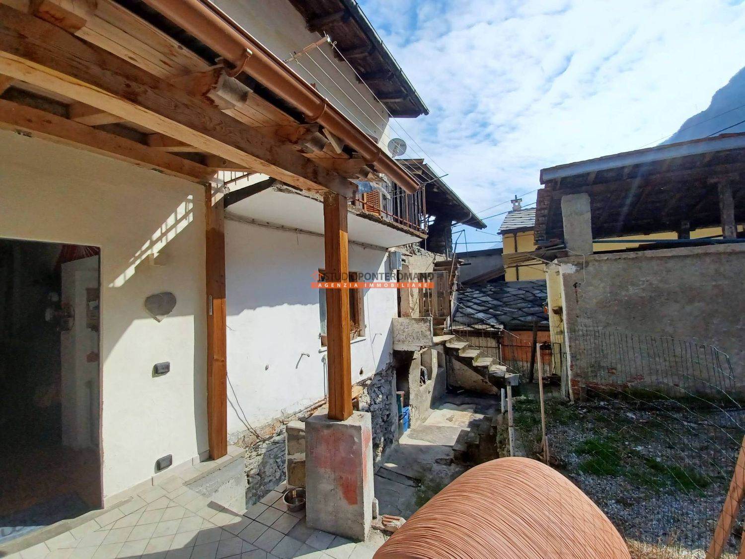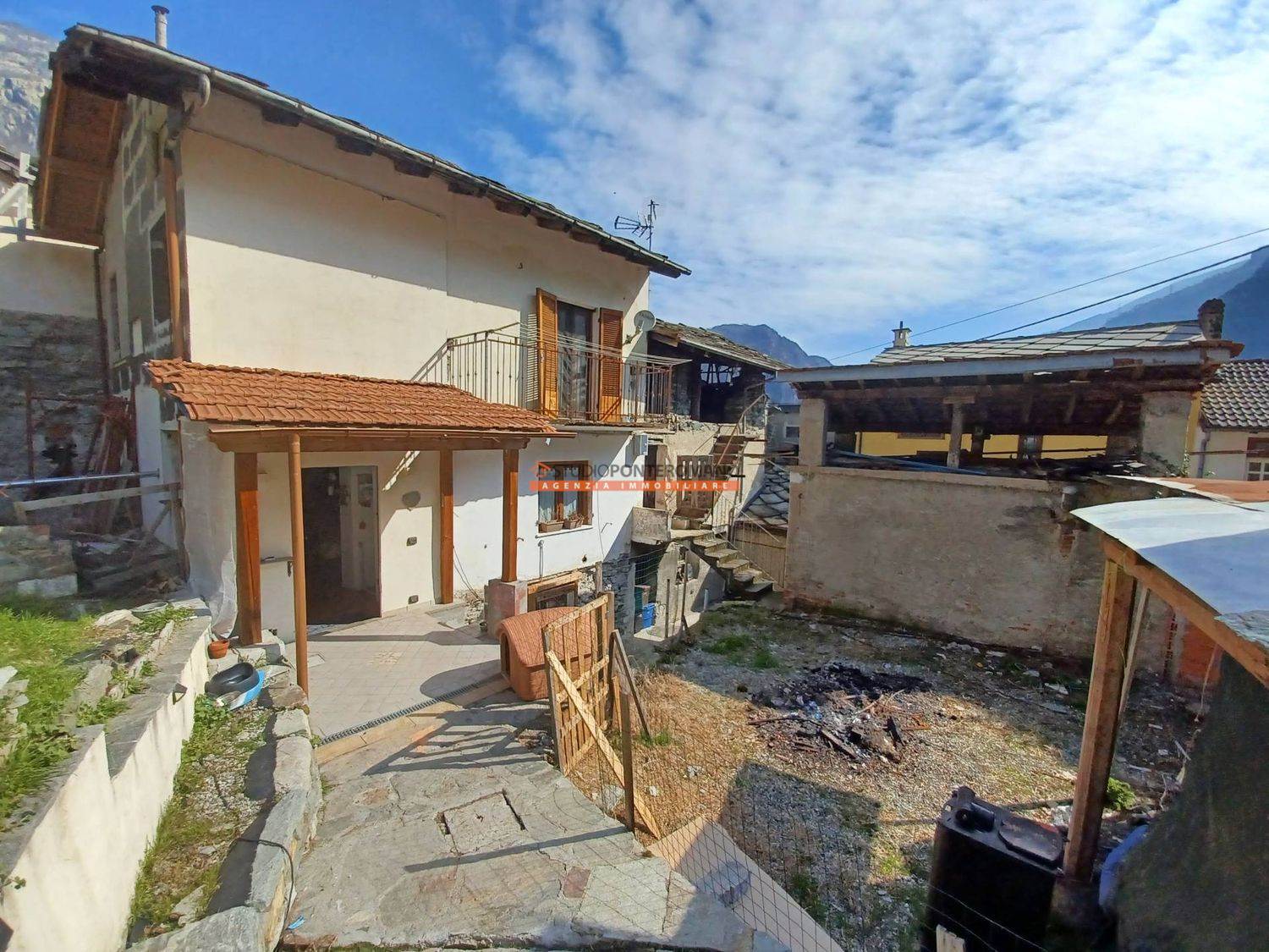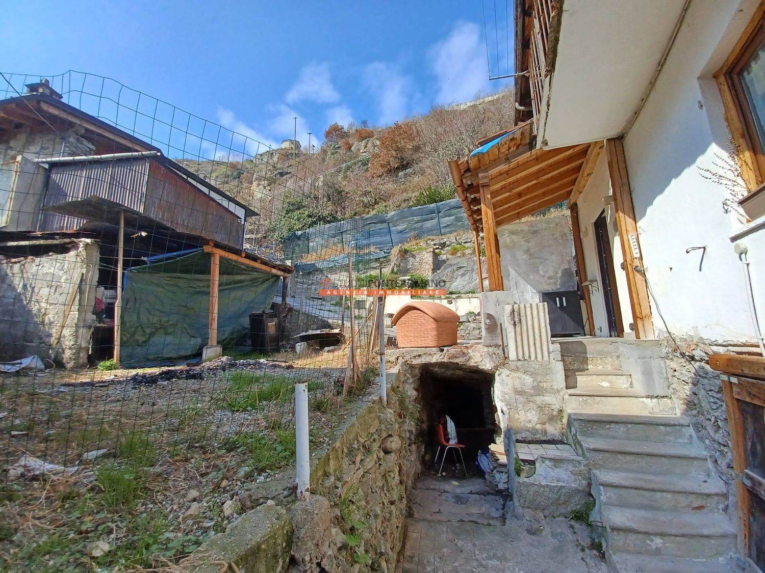 Non distante dal Comune e dalla farmacia, sulla strada che porta a Champorcher, casa semindipendente composta da abitazione ristrutturata con soggiorno con angolo cottura, ampia camera, balcone e bagno, oltre ad un porzione rustico da ristrutturare per collegarla all'abitazione o per realizzare una seconda unità. Sono compresi un giardino privato, un secondo immobile adibito a deposito e cantine e una rimessa. Ideale come punto d'appoggio o per ottenere un B&B.