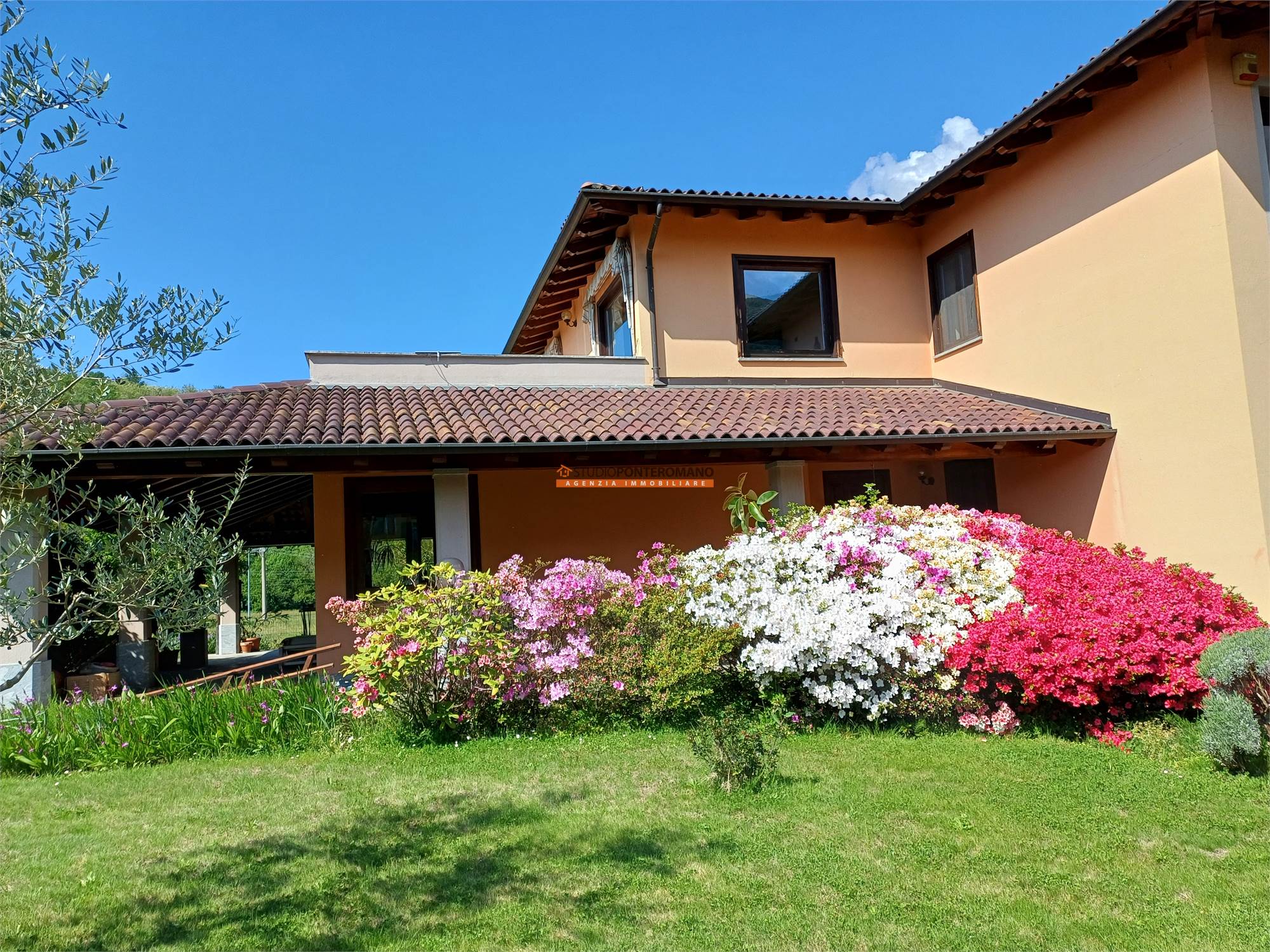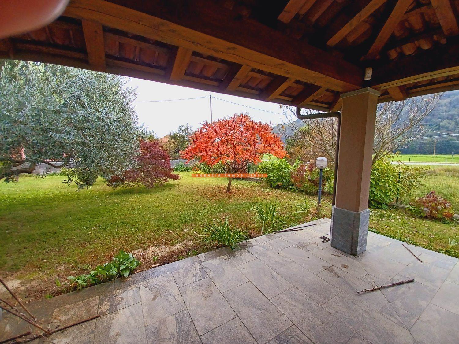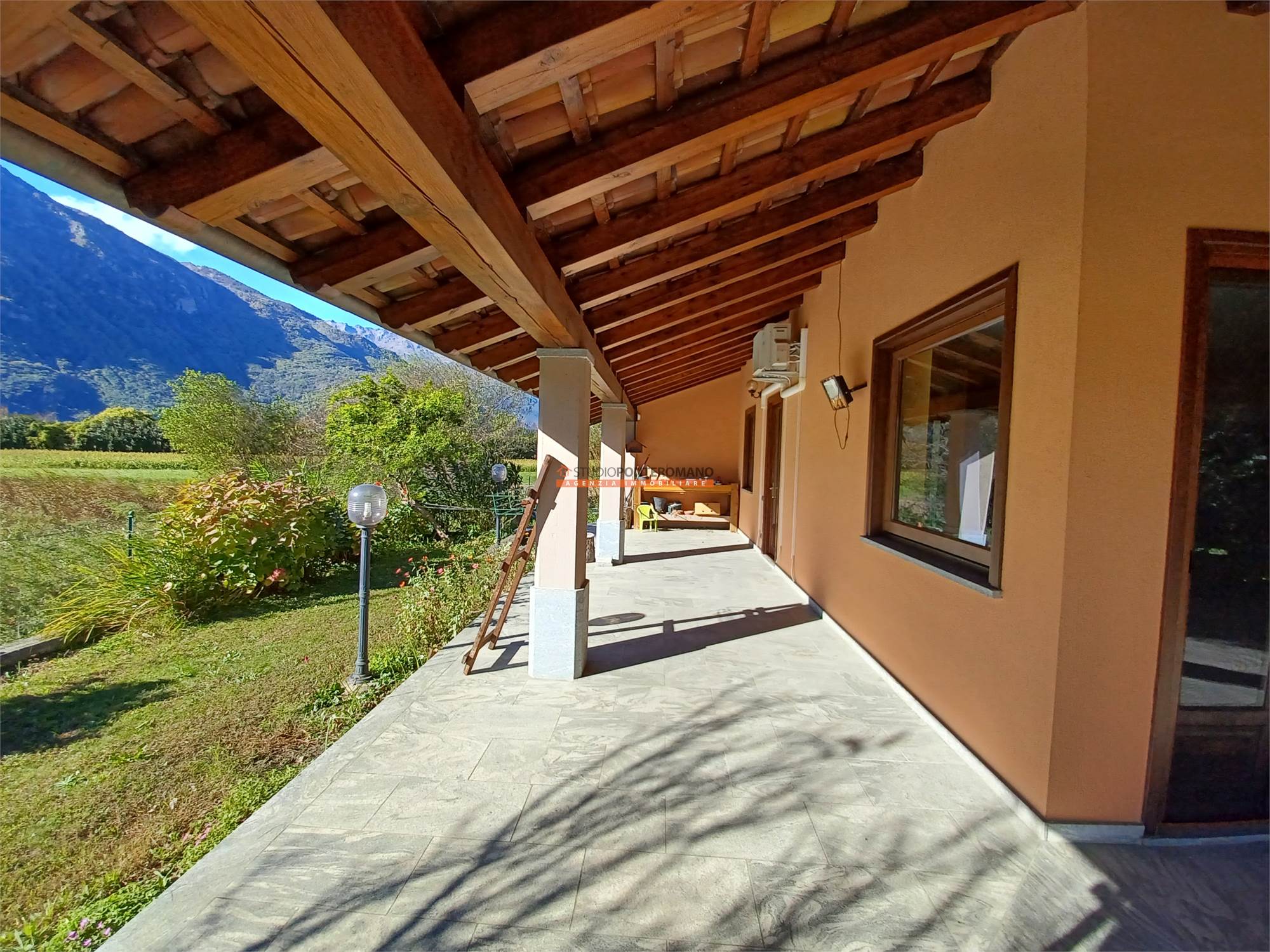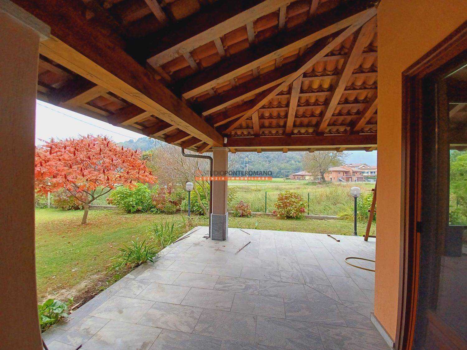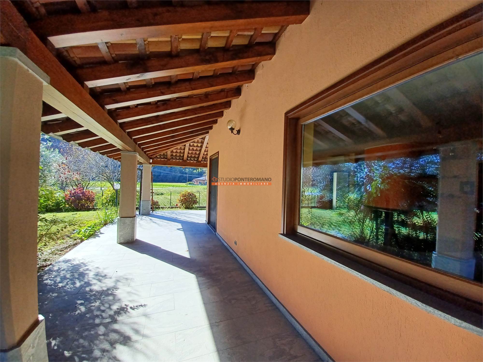 Dal soggiorno e dalla cucina si accede al porticato, perfetto per pranzi all'aperto o per momenti di relax e allo splendido giardino, ottimamente curato e rigoglioso.