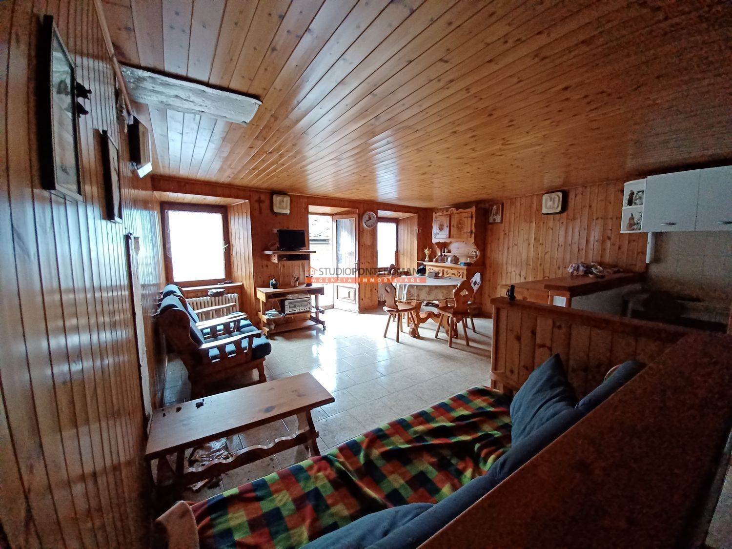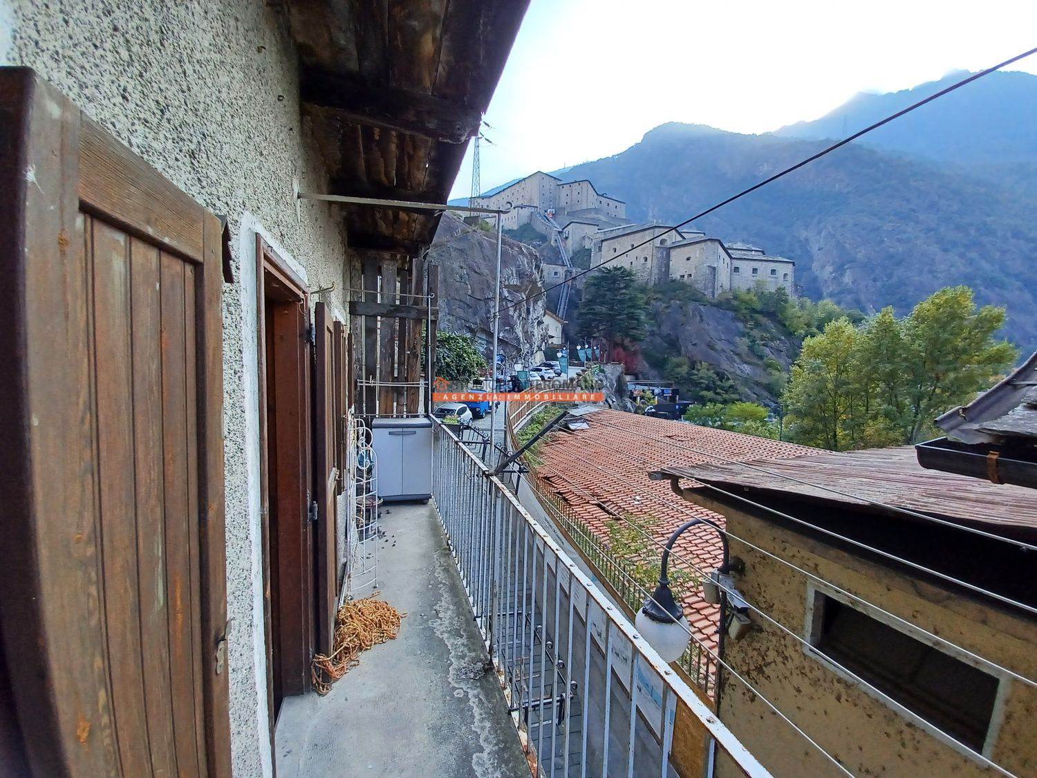 Appartamento da riattare, con vista sul Forte di Bard, composto da ingresso soggiorno con angolo cottura e balcone al secondo piano; 2 camere e bagno al primo piano. Con pollaio e cantina, abbinabile ad un'altra porzione di immobile in vendita per acquistare l'intera casa.