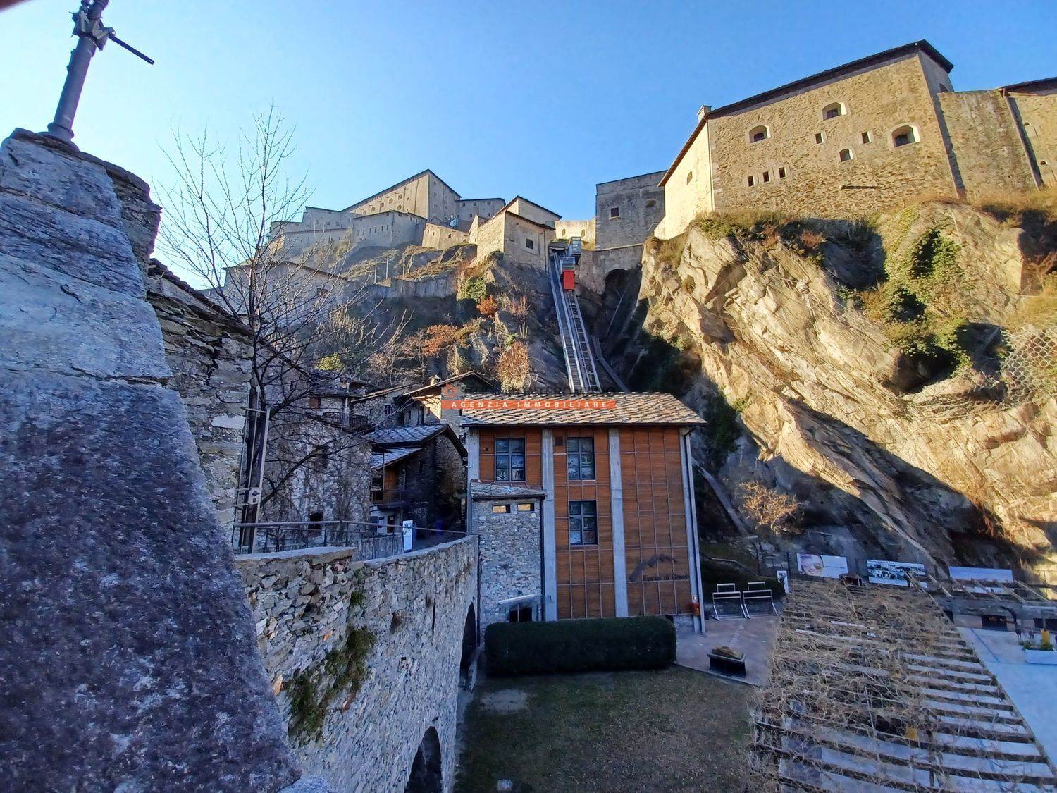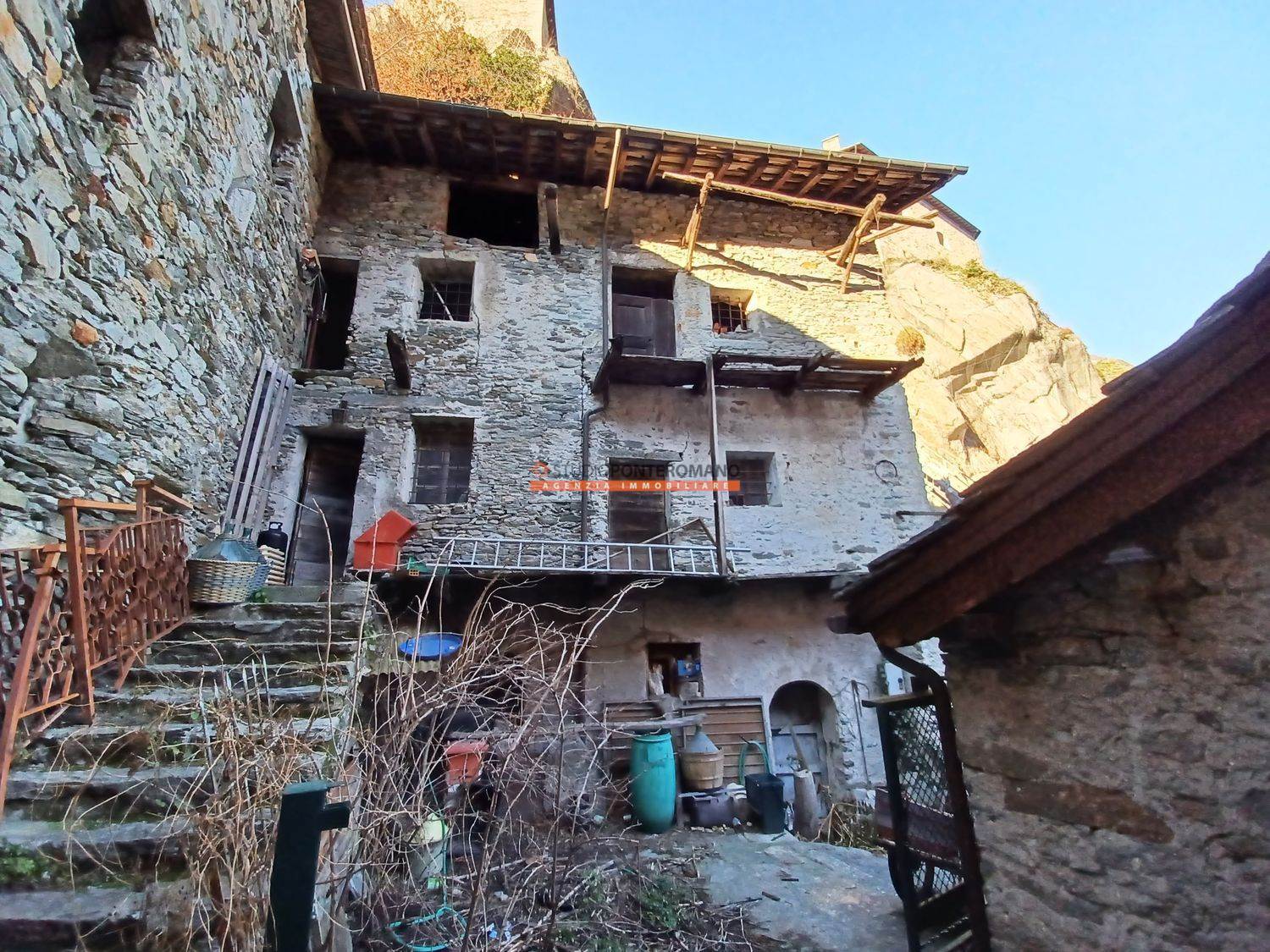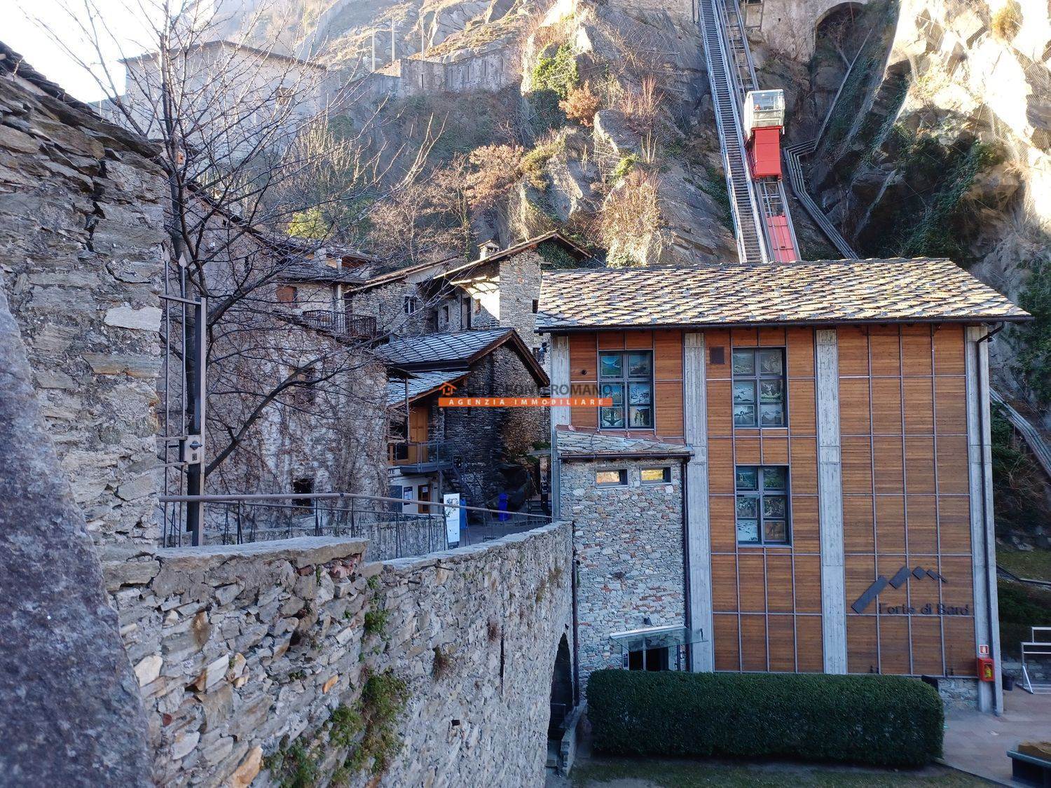 Ai piedi del Forte di Bard, rustico semindipendente composto da 2 cantine al piano seminterrato, 2 vani al piano terra e 2 locali in sottotetto (con altezza di 5 metri al colmo), utili per creare 2 piani distinti di abitazione. Al piano terreno è presente una corte con deposito.