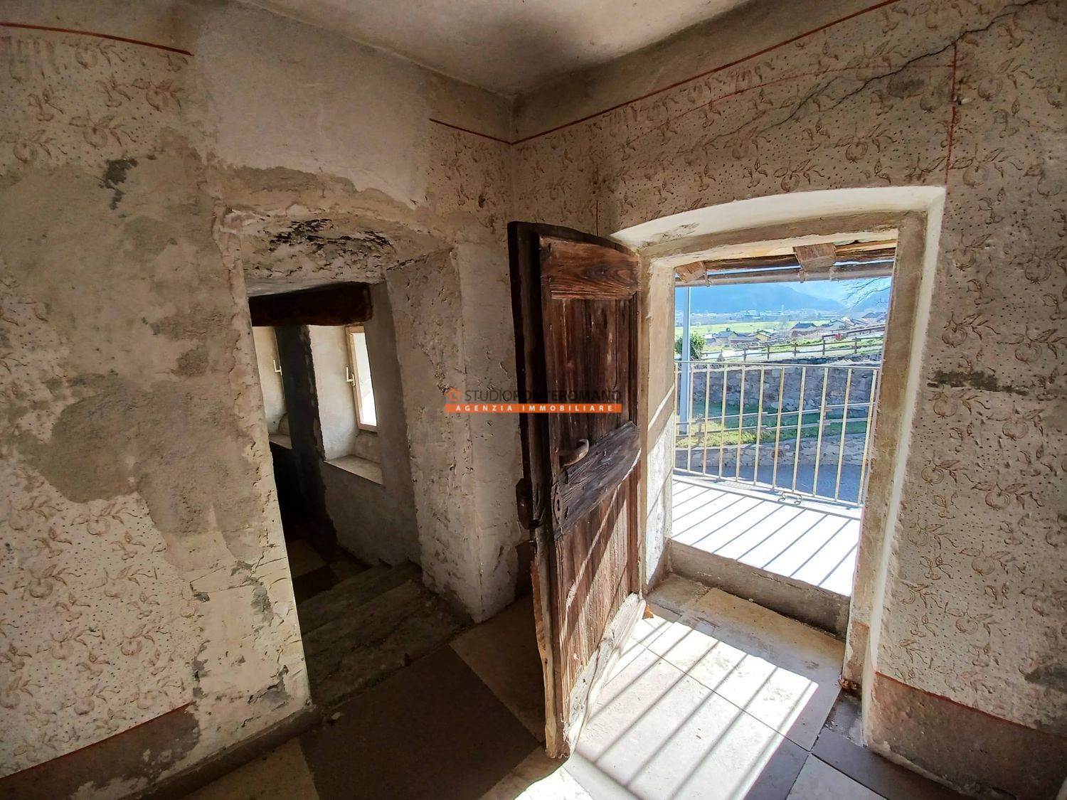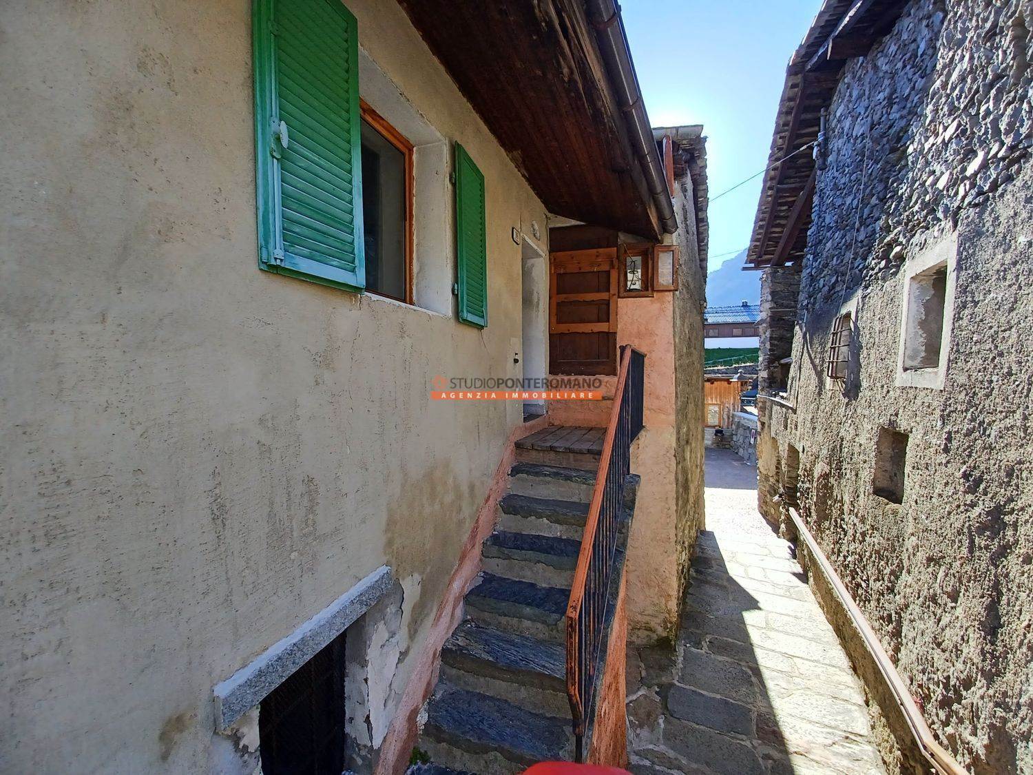All'ingresso della caratteristica Località Montey, porzione di casa da ristrutturare composta da 3 camere, servizio, ripostiglio, taverna con volta in mattoni e balcone al primo piano; cucina, 2 camere, ripostiglio, servizio e balcone al secondo piano. Con cantina, ripostiglio e piccola corte privata (oltre ad un'altra comune) al piano terra. Il doppio ingresso permette di poter separare i due piani rendendoli indipendenti. Possibilità di acquistare un terreno di ca 113 mq nelle vicinanze dell'abitazione.