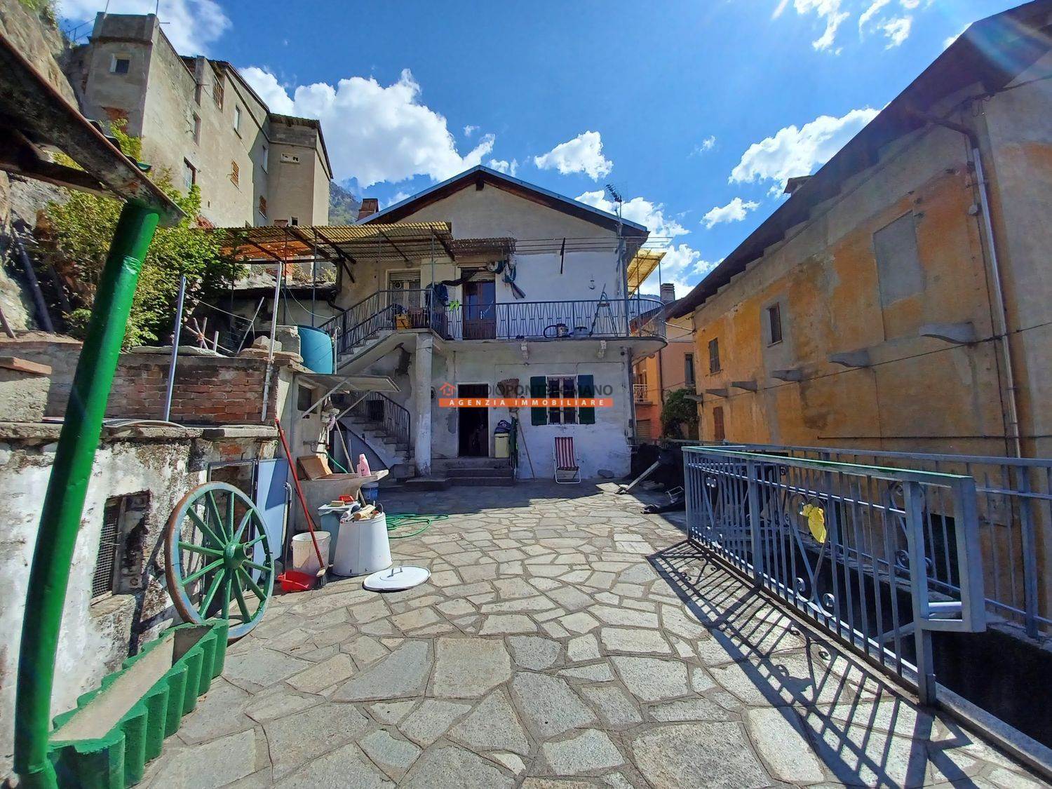 In zona soleggiata due case indipendenti da ristrutturare (con eccezione dei tetti rifatti circa 20 anni fa) con accesso comune tramite ampio terrazzo consistenti in: la prima composta da ingresso, soggiorno, cucina e terrazzo al primo piano; 2 camere e servizio al primo piano; la seconda da cucina abitabile, soggiorno e camera al primo piano e 2 camere e servizio al secondo piano. Sono inclusi 2 box con accesso da strada, depositi ai piani terra e primo e un piccolo giardino ricavato nel terrazzo.
