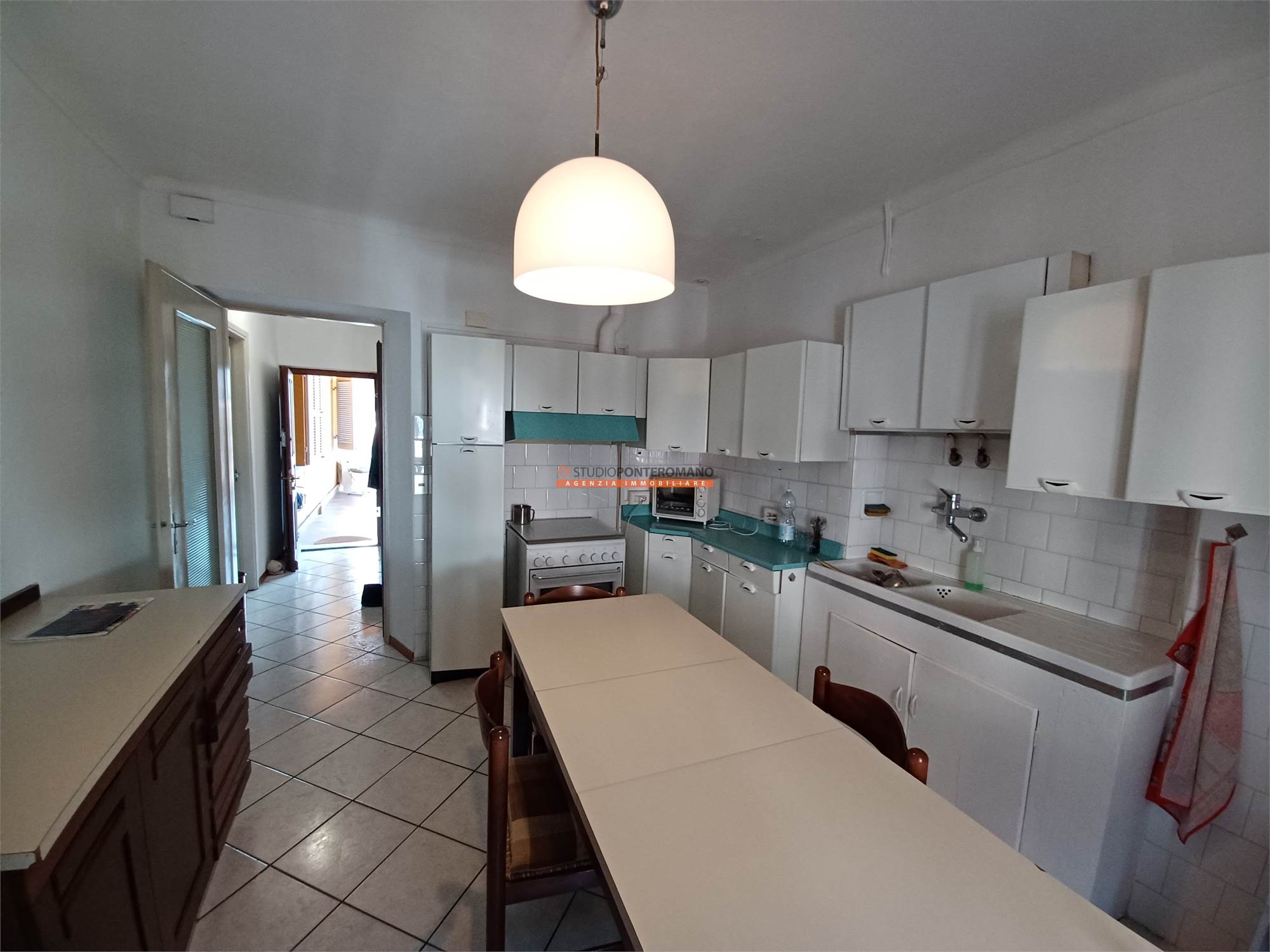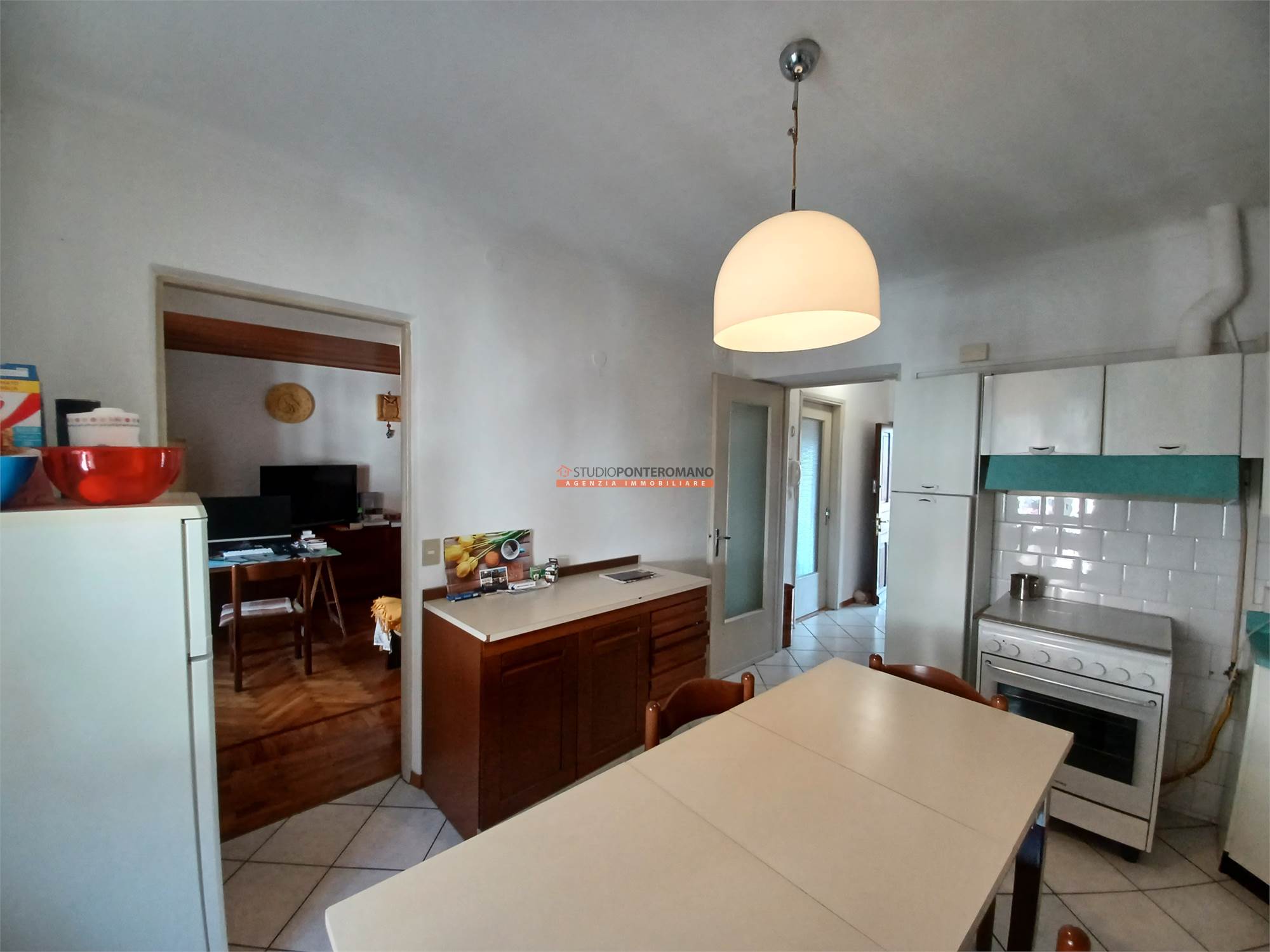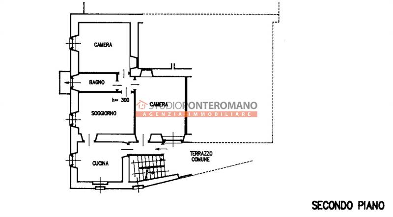 In centro appartamento al secondo e ultimo piano composto da ingresso, soggiorno, cucina abitabile, due camere spaziose, bagno, balcone e terrazzo. L’unità, evidenziata in azzurro, può essere collegata all’appartamento adiacente, consentendo di realizzare un’unica abitazione che occupa l’intero piano.